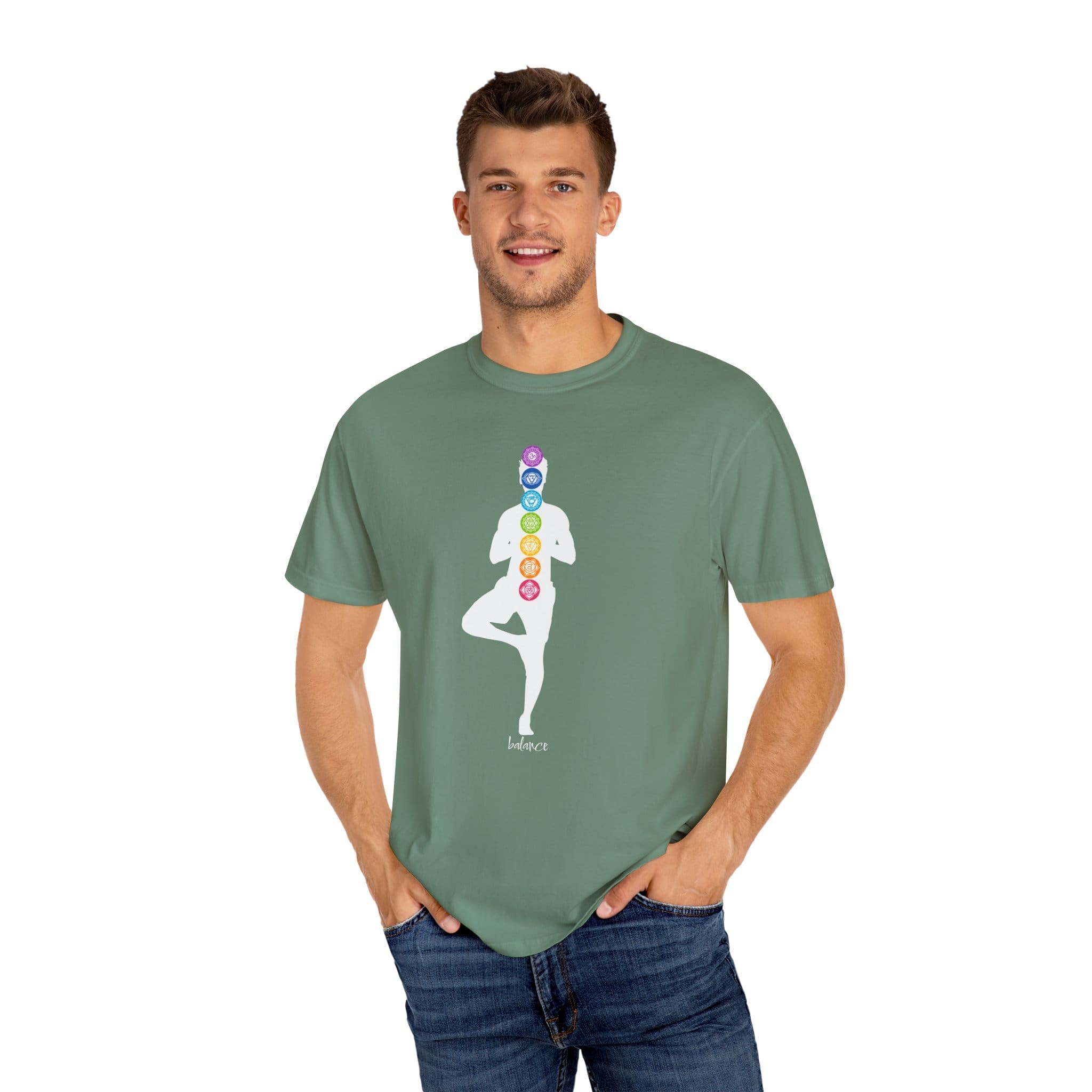 Balance – Chakra Unisex T-Shirt with Male Silhouette – This is an excellent choice for yourself or as a gift for anyone looking to promote physical, emotional, and spiritual well-being, or just because! (I also have a similar shirt with a female silhouette.)