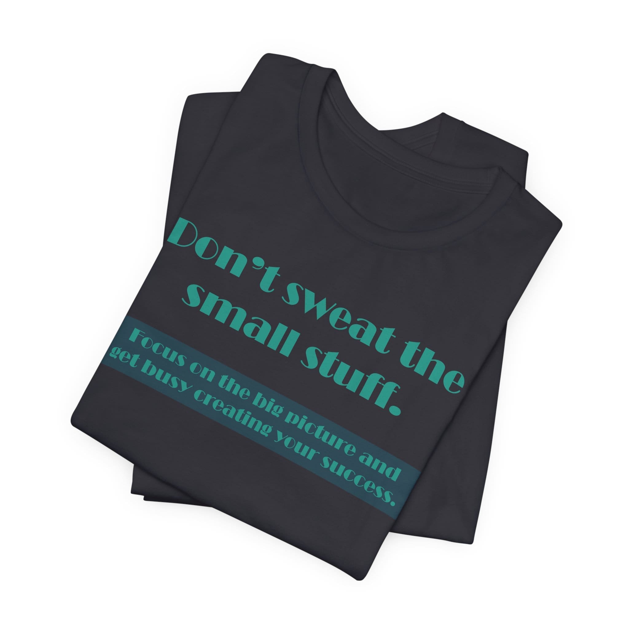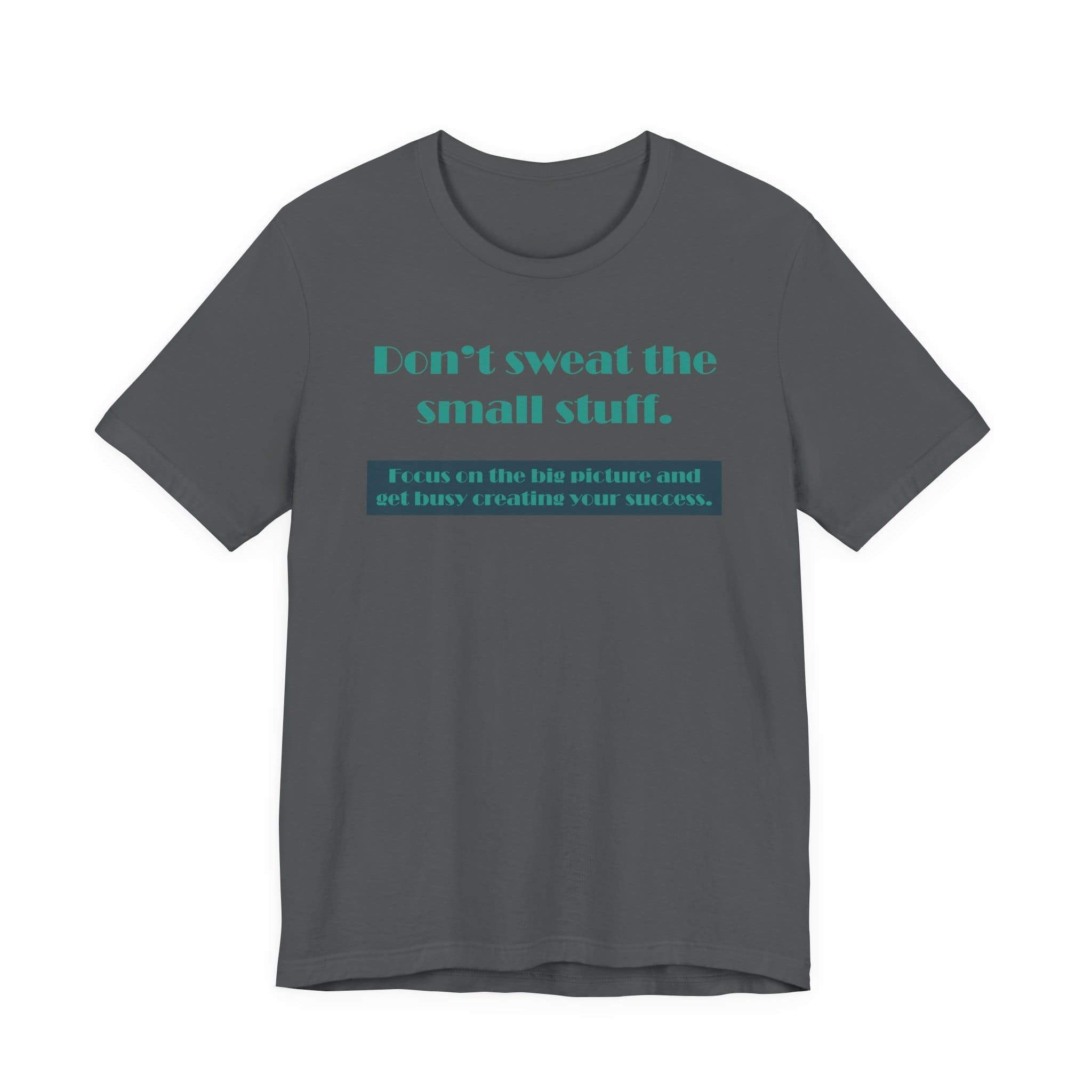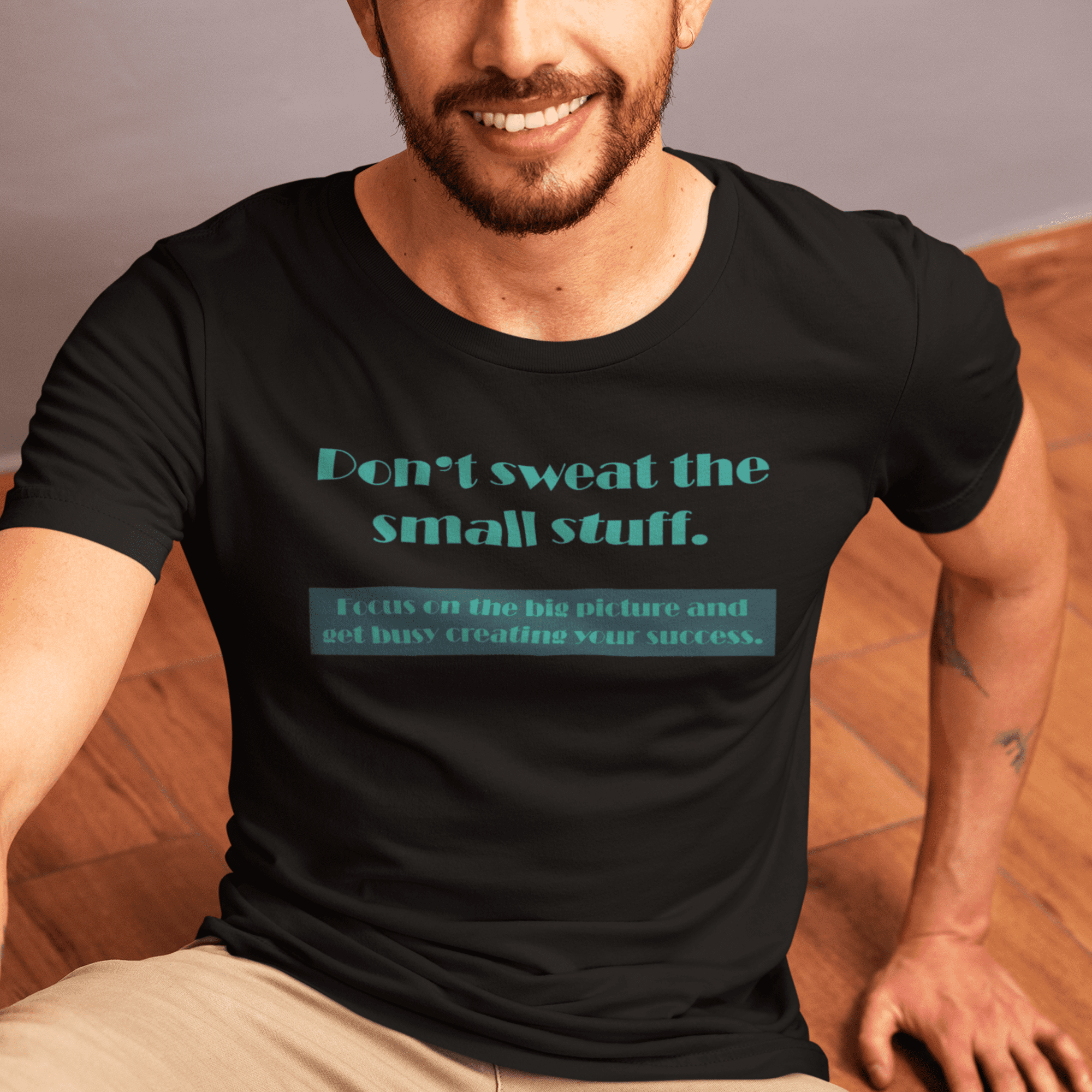 ‘Don’t sweat the small stuff. Focus on the big picture and get busy creating your success.’ – This t-shirt is an excellent choice for self-empowerment, a daily affirmation, or just because! This design is printed on a Bella + Canvas 3001 tee, a relaxed-fit, lightweight t-shirt.