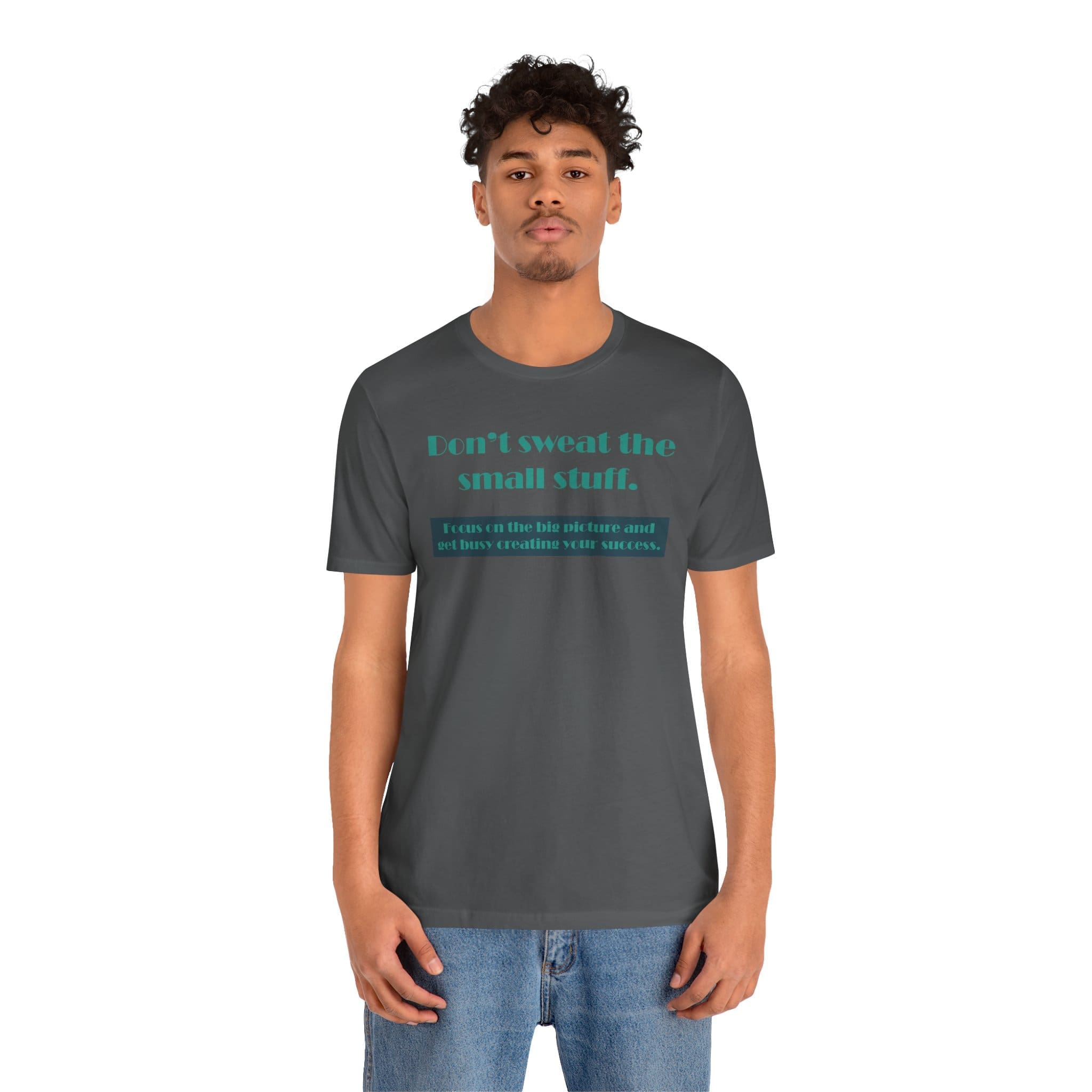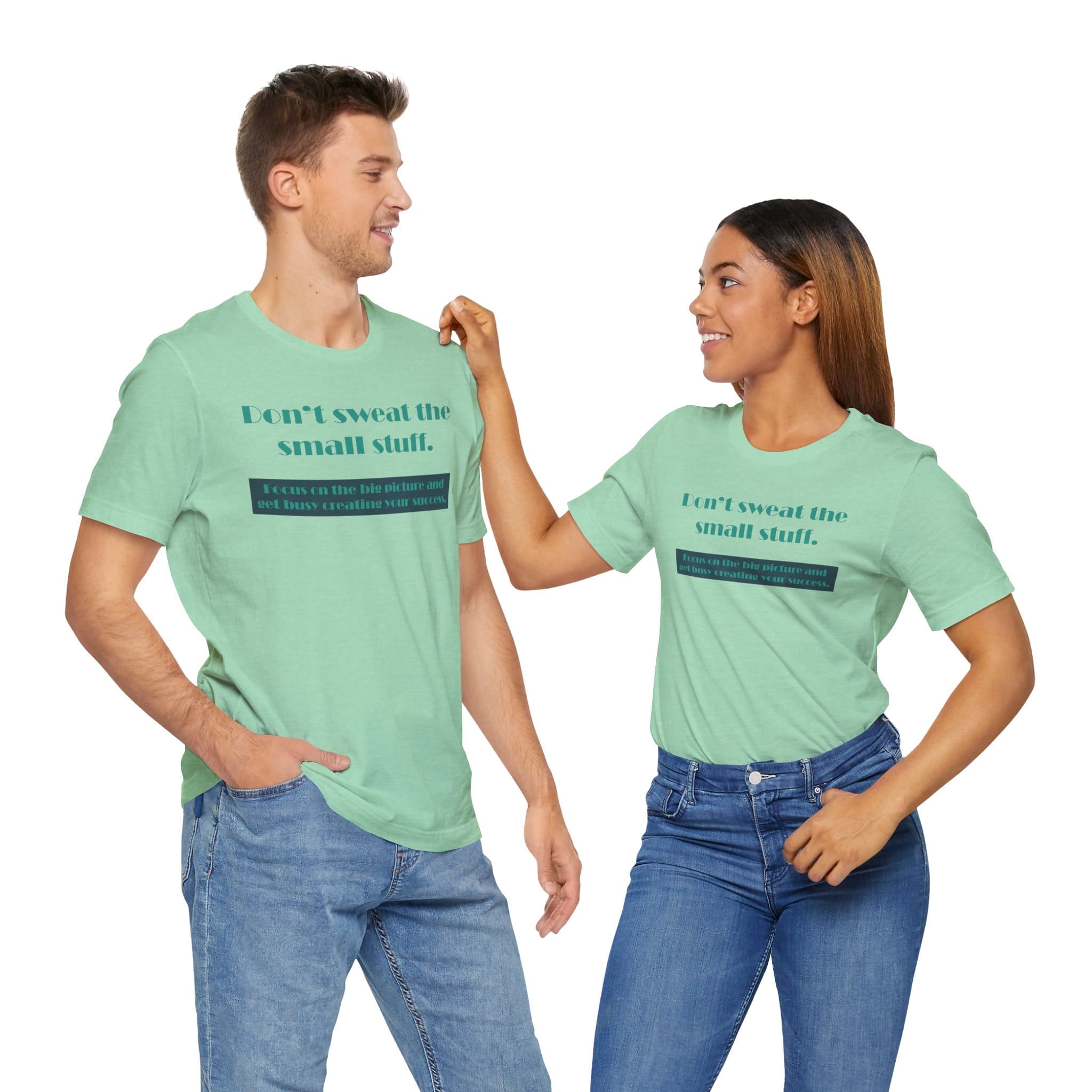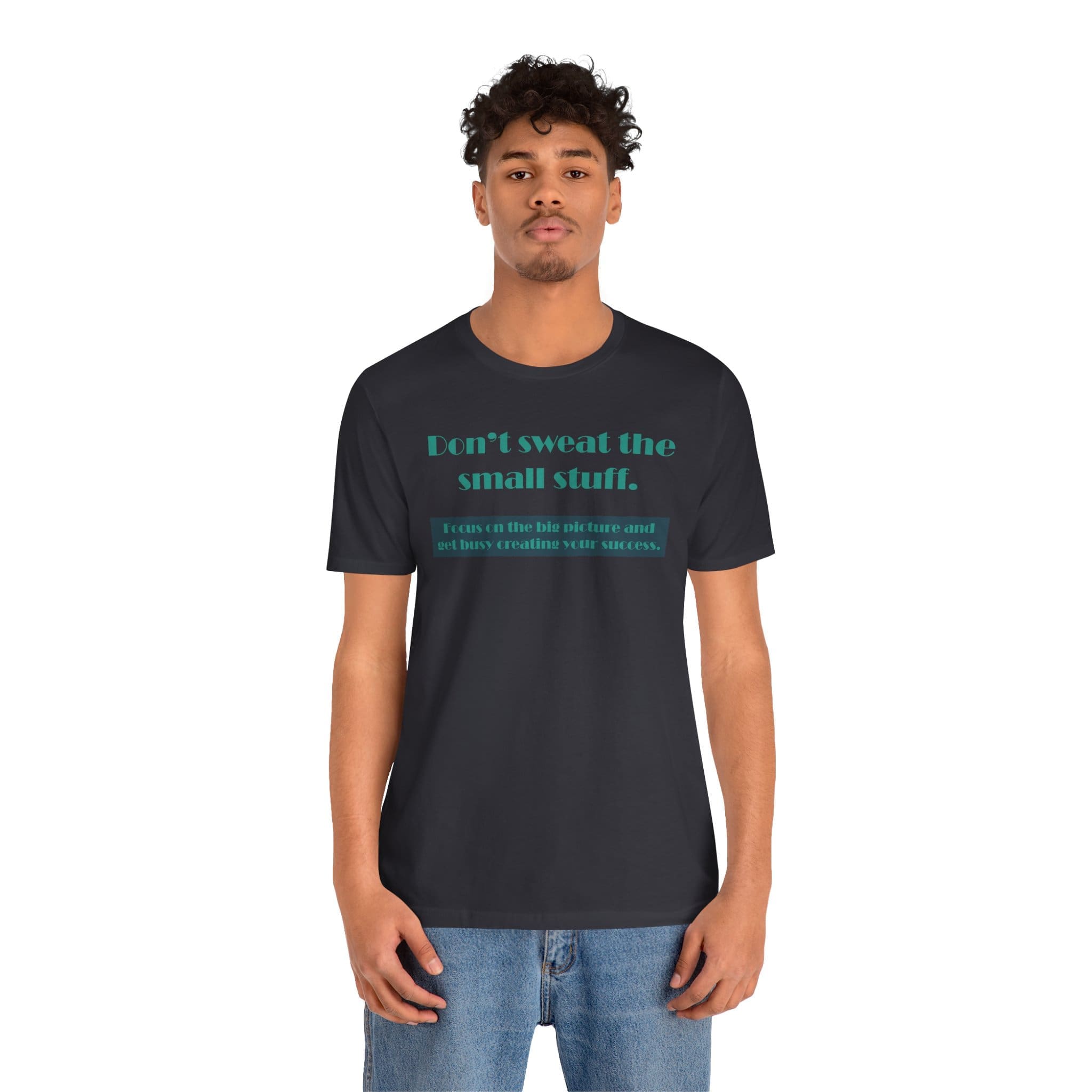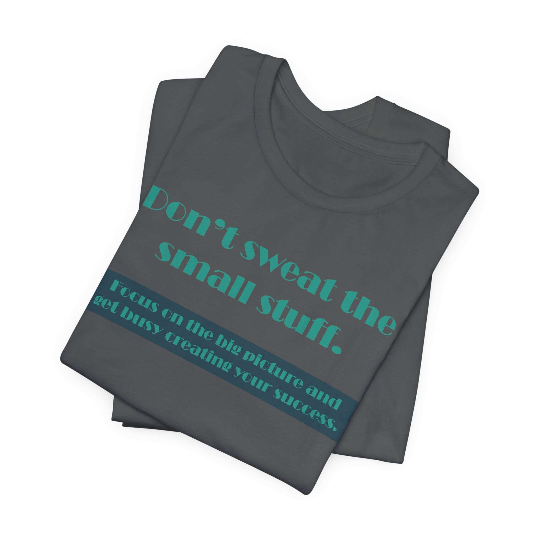 ‘Don’t sweat the small stuff. Focus on the big picture and get busy creating your success.’ – This t-shirt is an excellent choice for self-empowerment, a daily affirmation, or just because! This design is printed on a Bella + Canvas 3001 tee, a relaxed-fit, lightweight t-shirt.