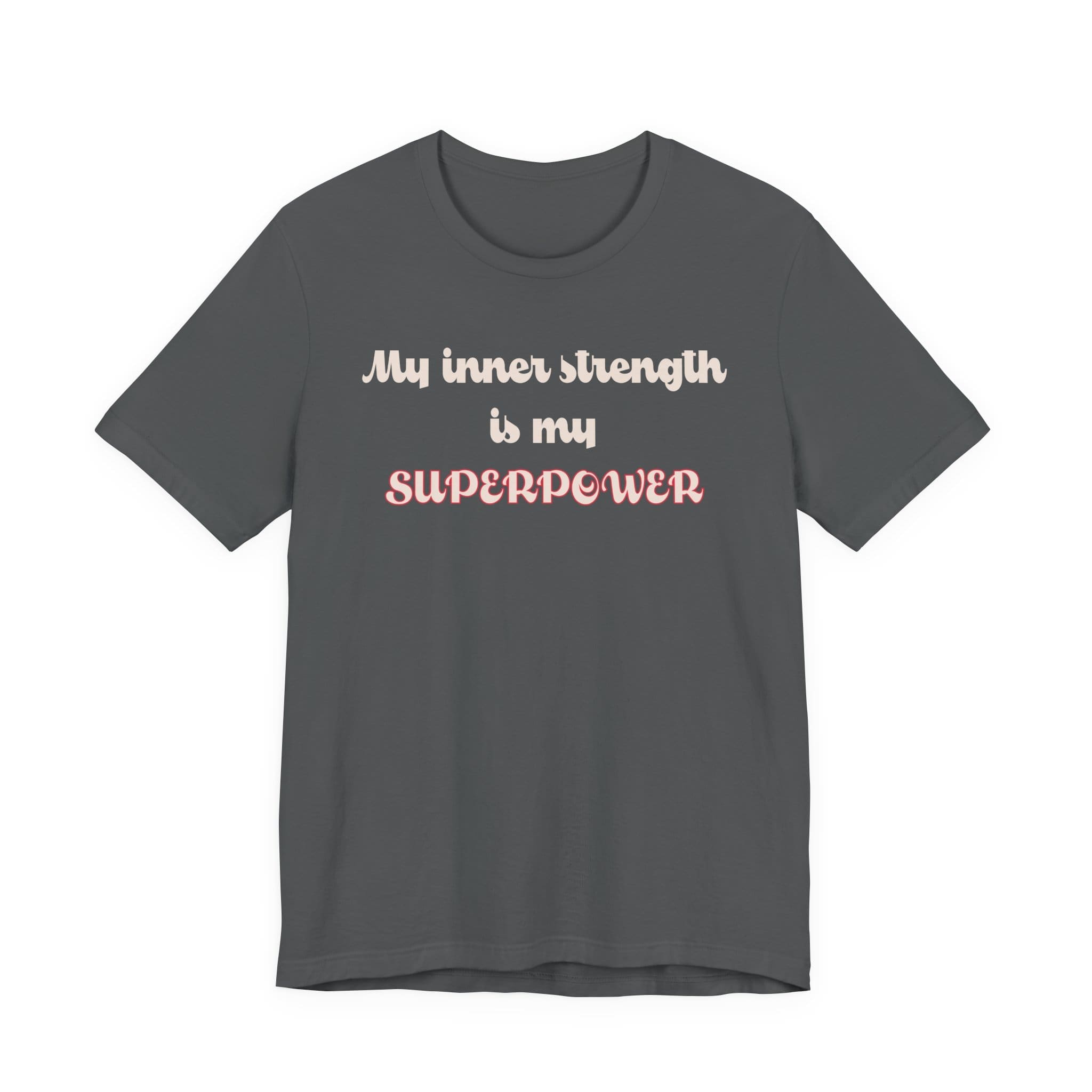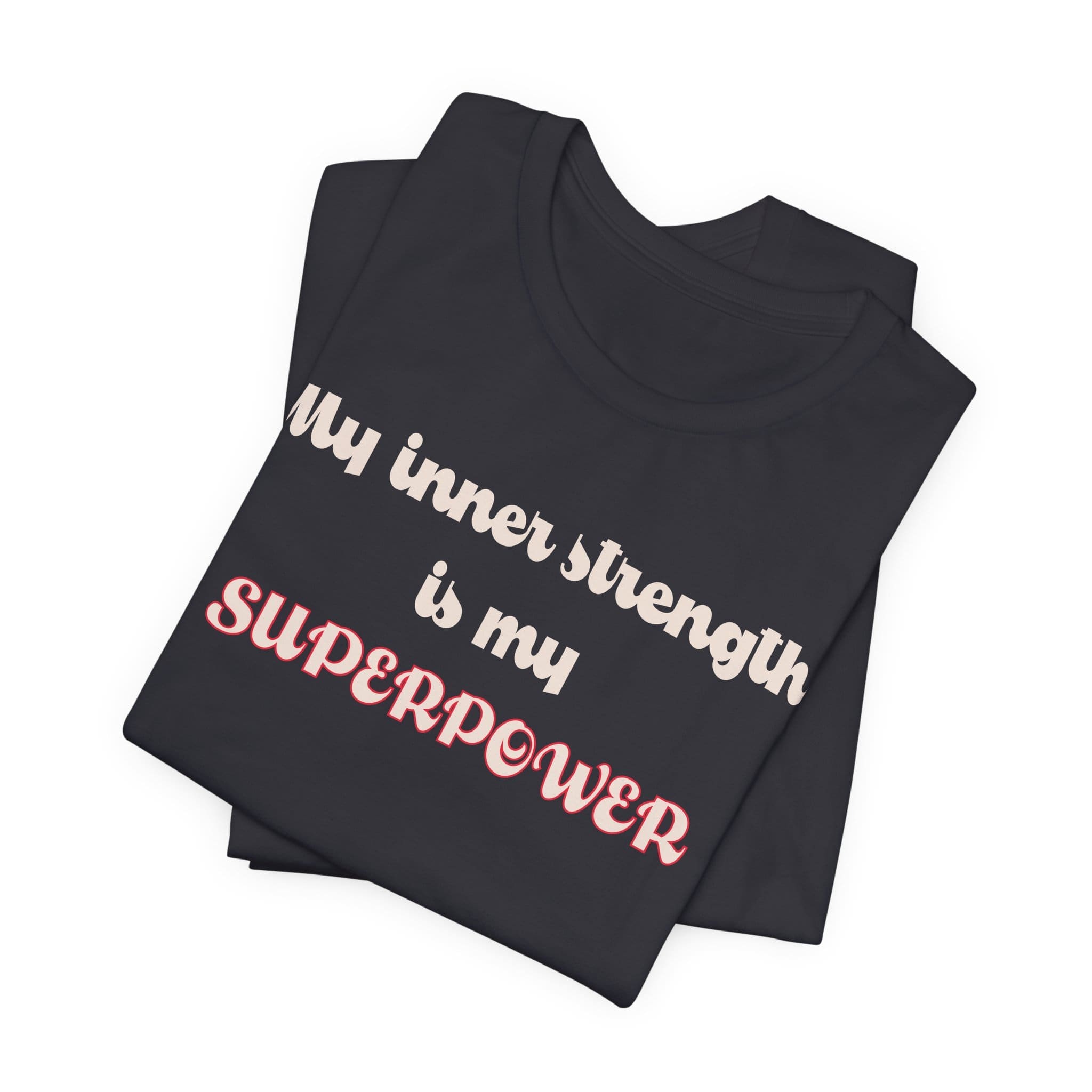 Introducing the perfect addition to your wardrobe: a stylish Unisex Jersey Short Sleeve Tee, designed for comfort and a chic vibe. Emphasizing self-empowerment, the bold statement ‘My inner strength is my superpower’ resonates deeply with those embracing personal growth and positivity. This tee not only provides a flattering fit, but its lightweight, breathable fabric makes it ideal for both active adventures and relaxed lounging. Perfect for casual outings, cozy gatherings, or as a motivational gift for friends, this tee is relevant for occasions such as birthdays, graduations, or just because. Celebrate your journey and inspire others with a reminder of their inner strength!