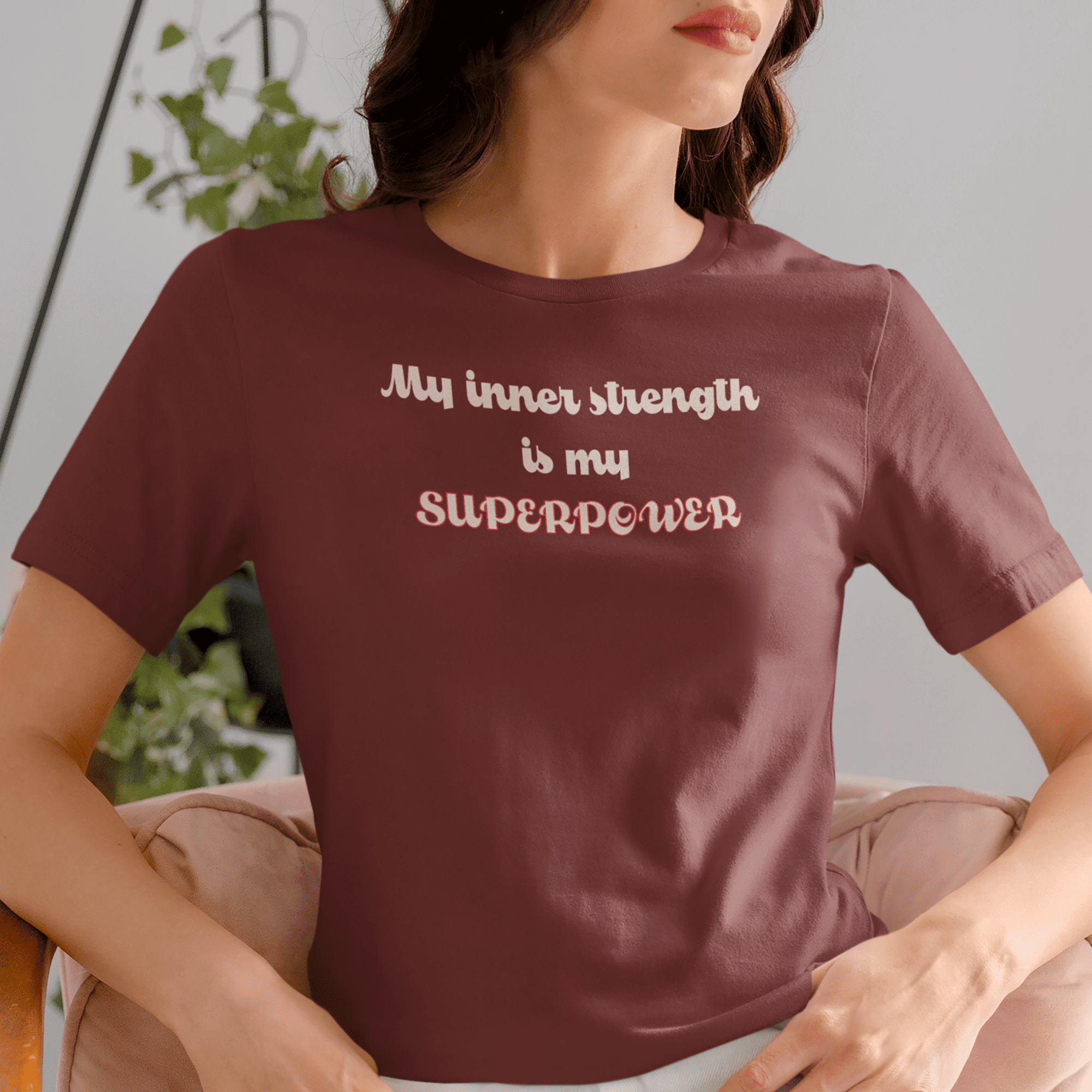 ‘My Inner Strength is My Superpower’ Lightweight T-Shirt – This tee is an excellent choice for self-empowerment, a daily affirmation, or just because! This design is printed on a Bella + Canvas 3001 tee, a relaxed-fit, unisex t-shirt.