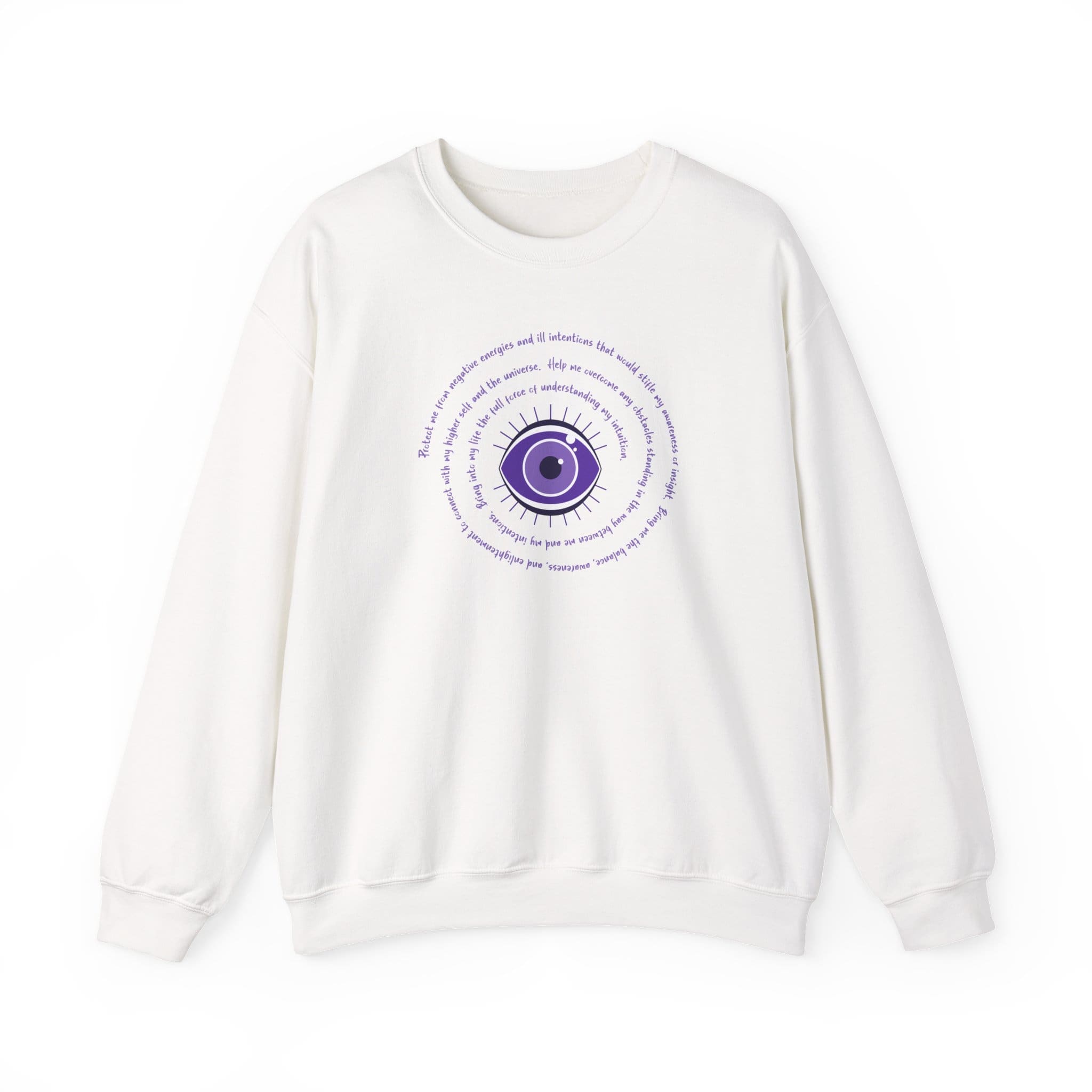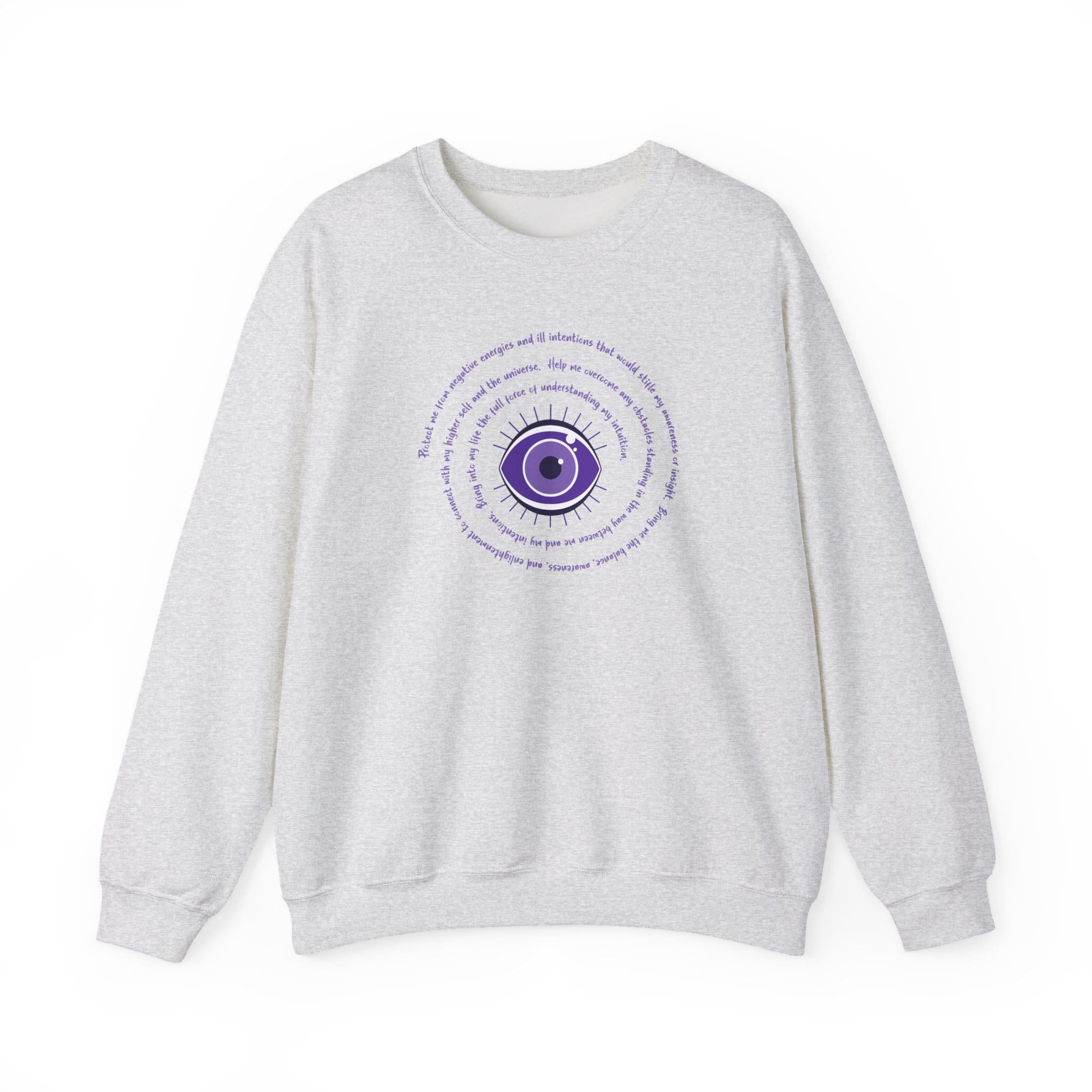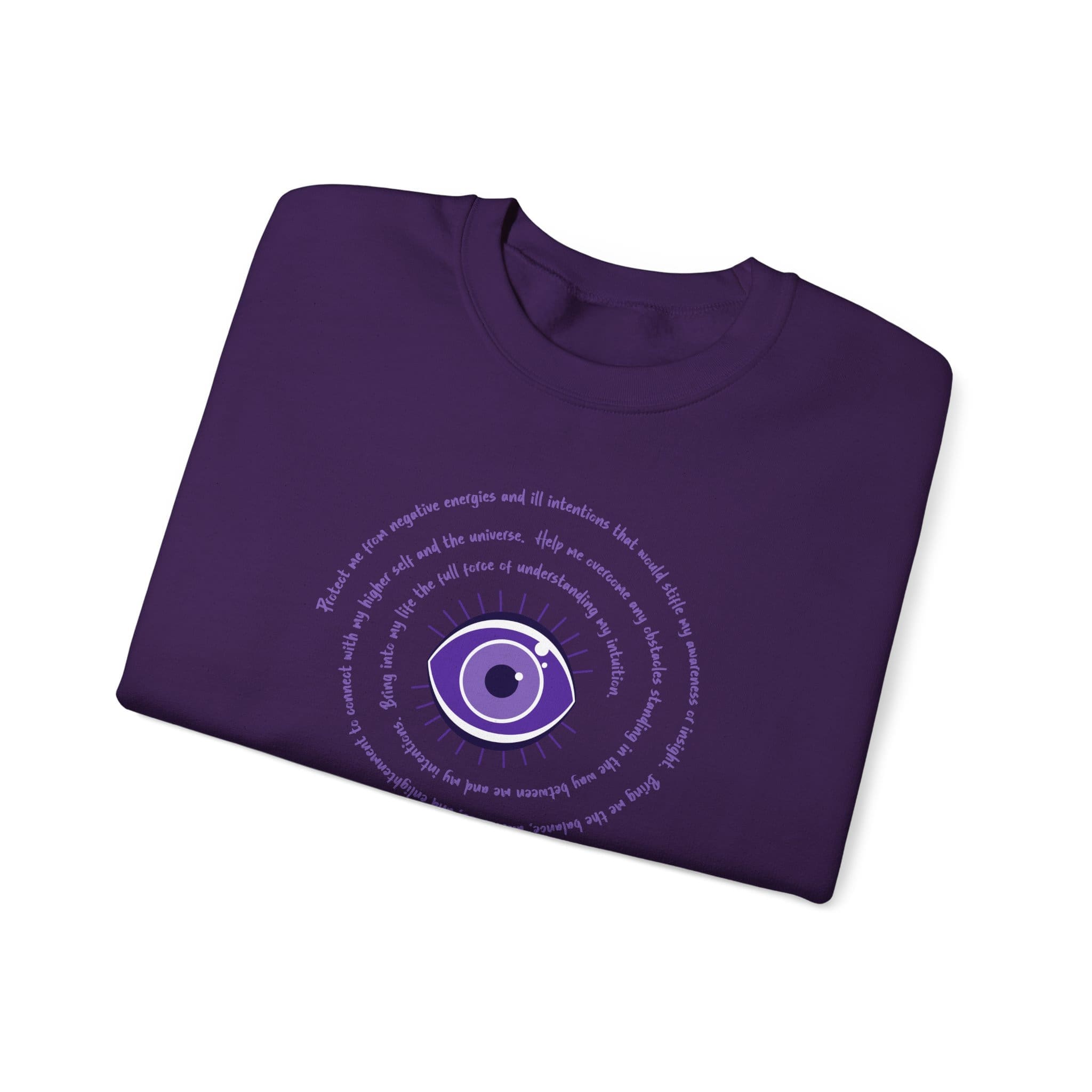 Purple Evil Eye Protection Sweatshirt – The Evil Eye is an ancient symbol believed to ward off negativity. Many cultures have used this symbol for protection over the ages. It also serves as a reminder to be mindful of our thoughts and radiate positive vibes out into our lives.