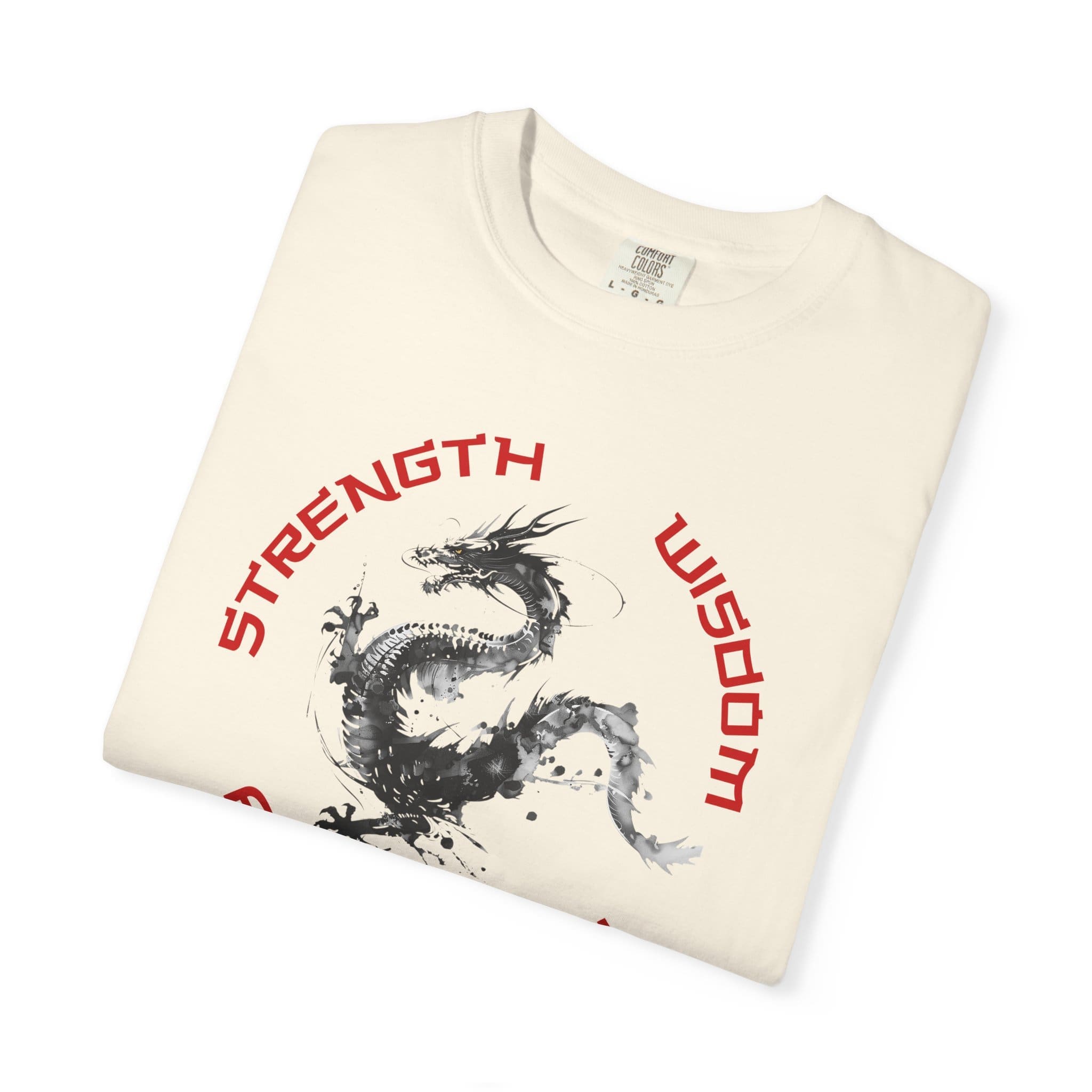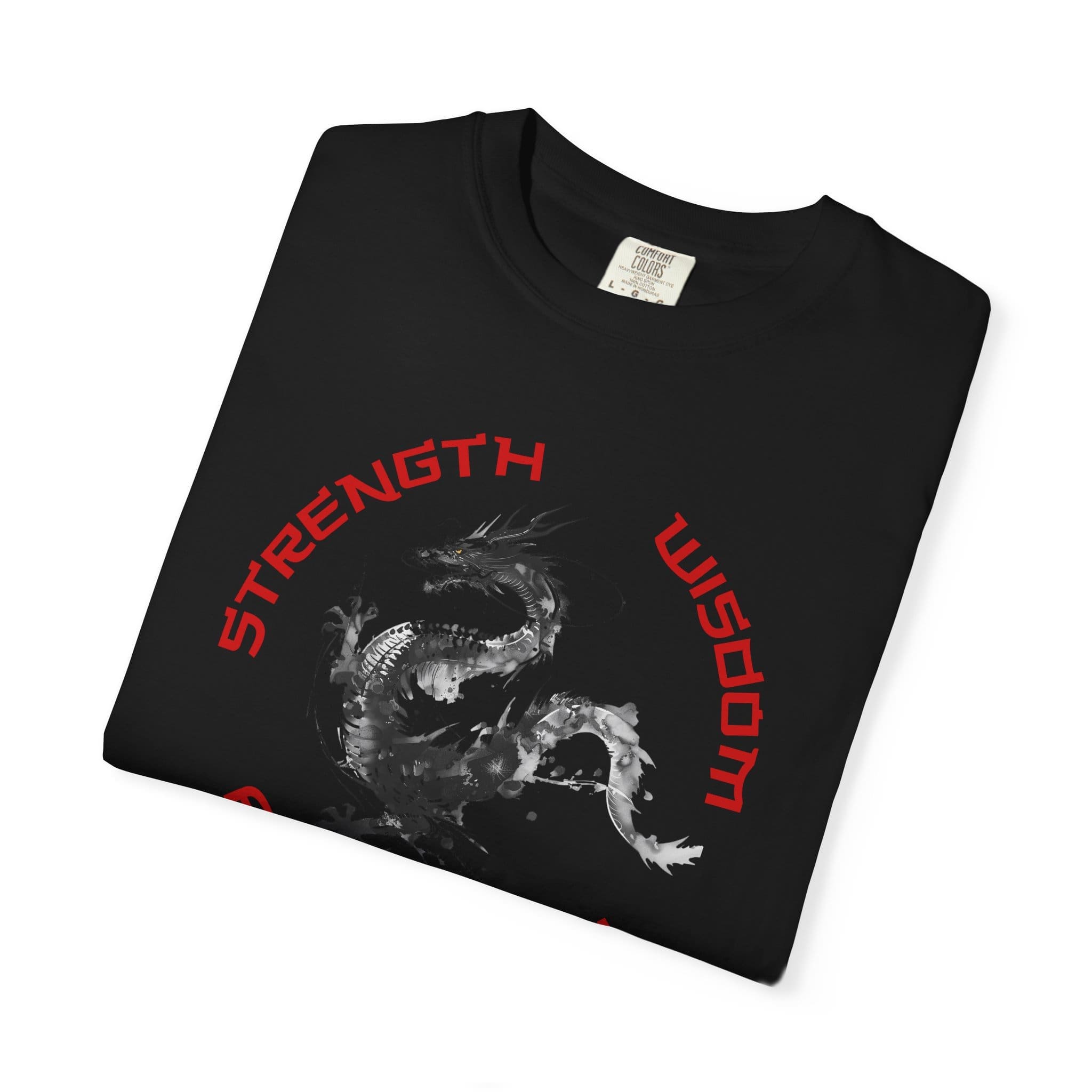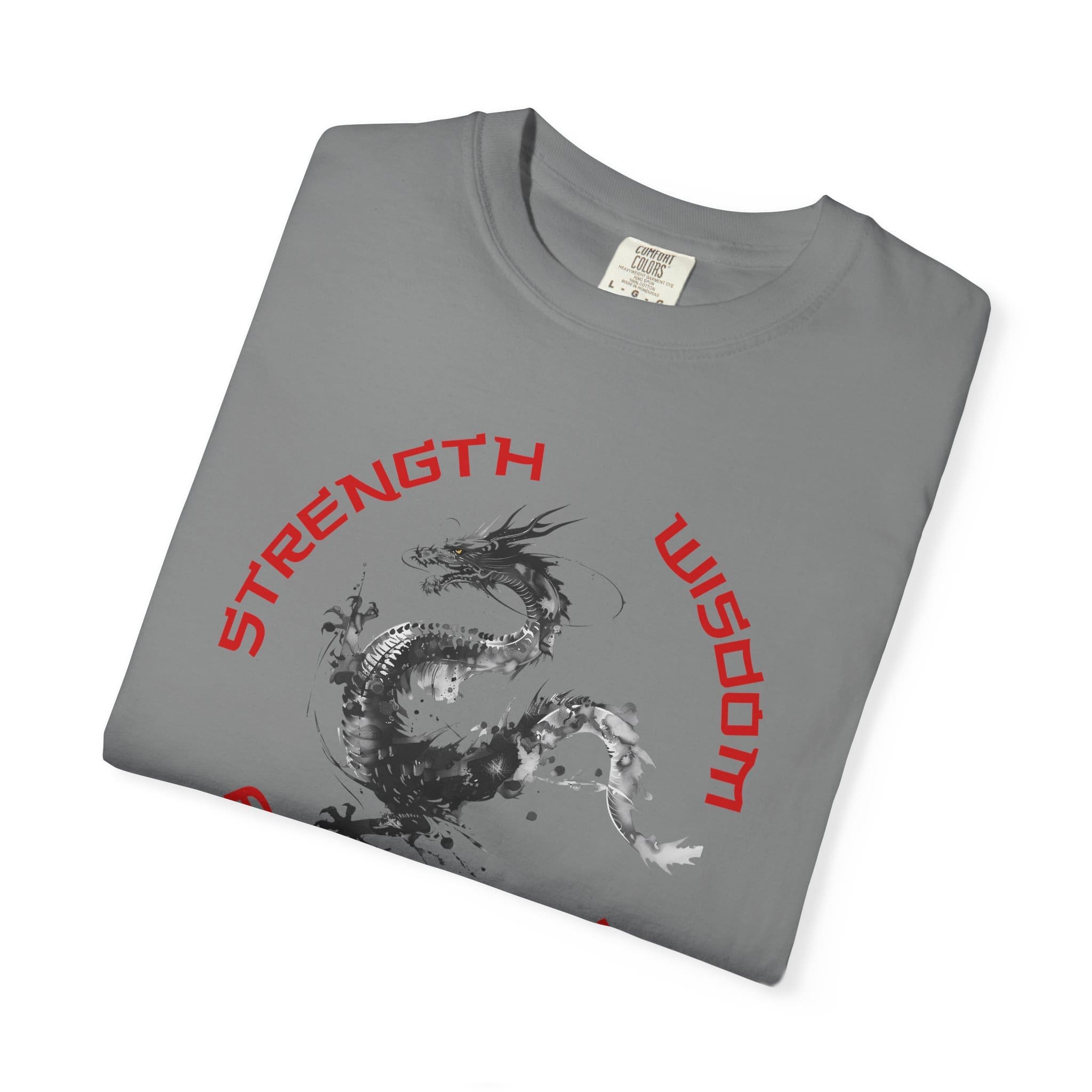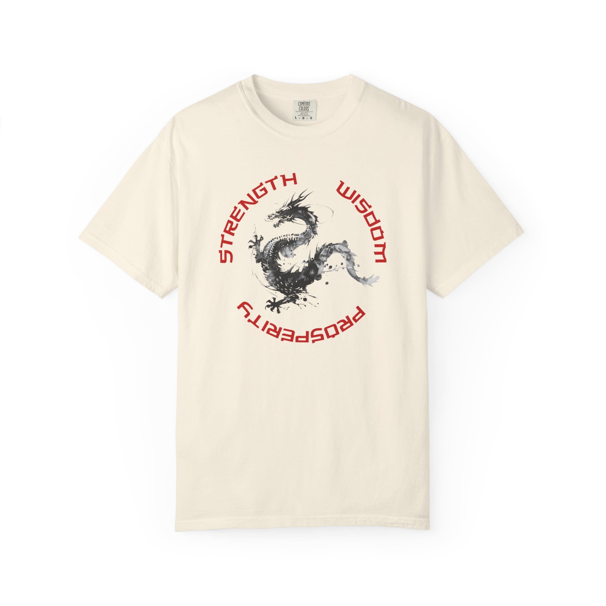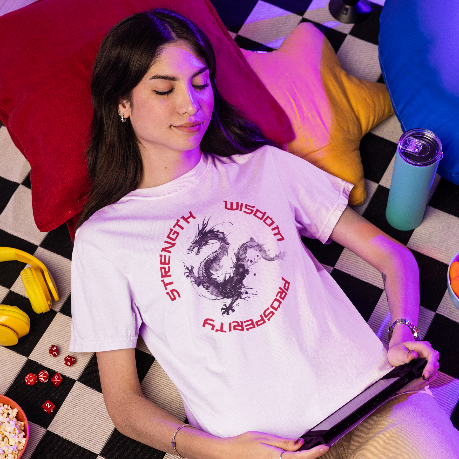 Strength, Wisdom, Prosperity Tee – a great shirt for cultivating a positive attitude about personal growth & spirituality, or just because! A dragon can also represent these inspiring words.