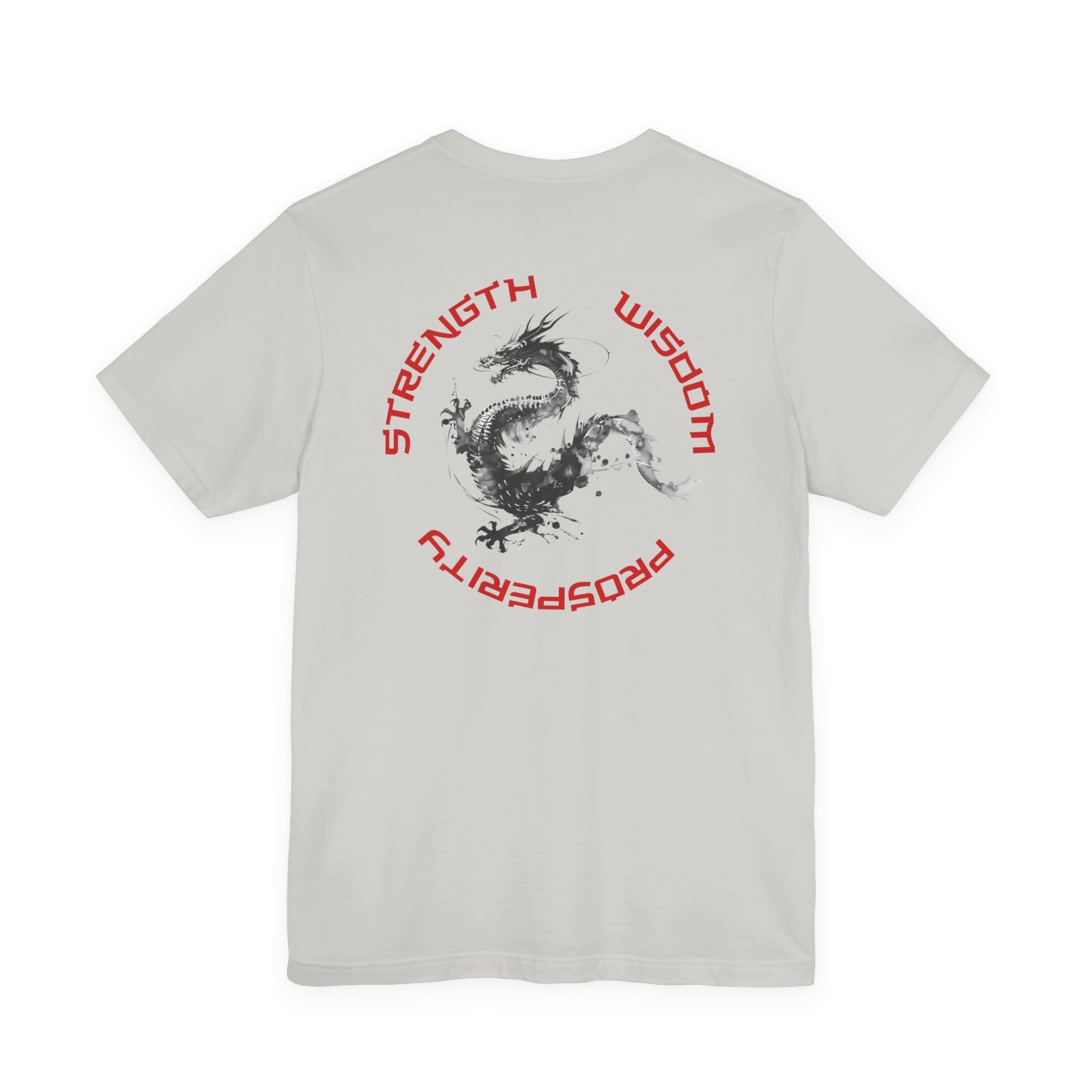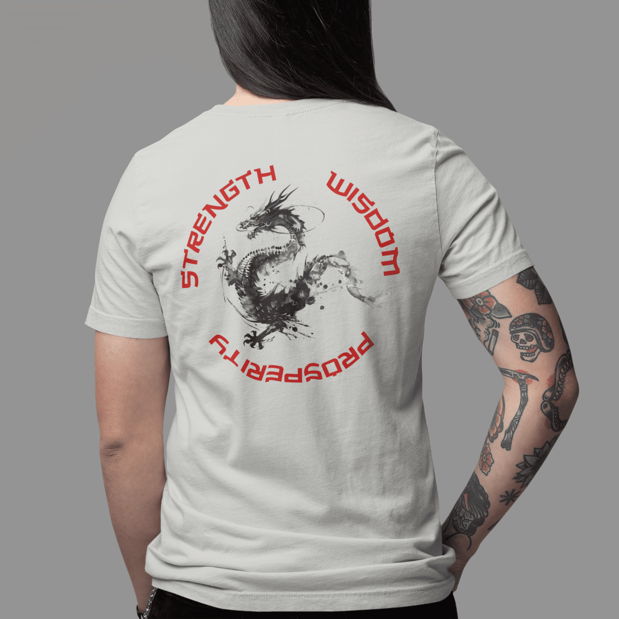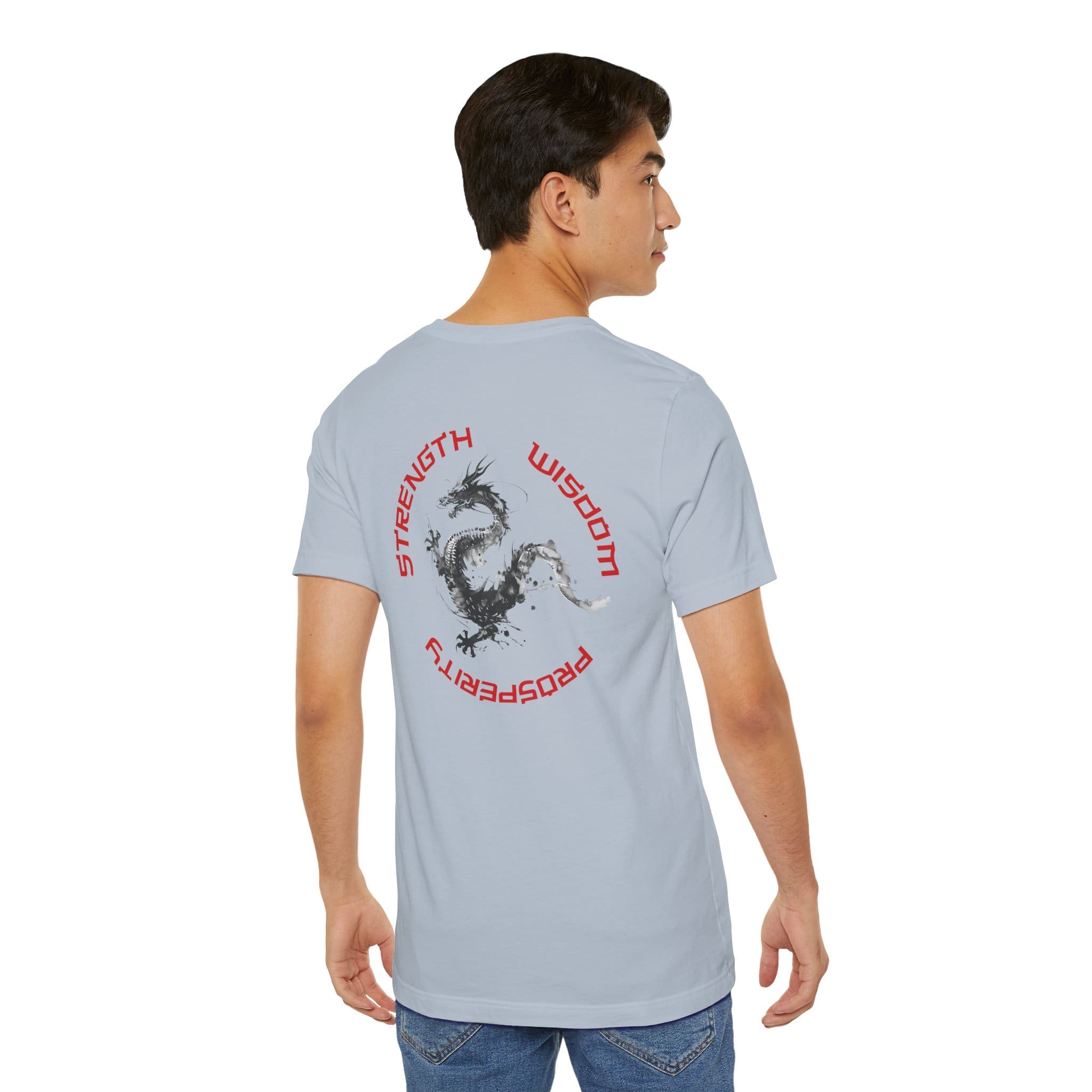 Strength, Wisdom, Prosperity Unisex Tee – a great shirt for cultivating a positive attitude about personal growth & spirituality, or just because! A dragon can also represent these inspiring words.