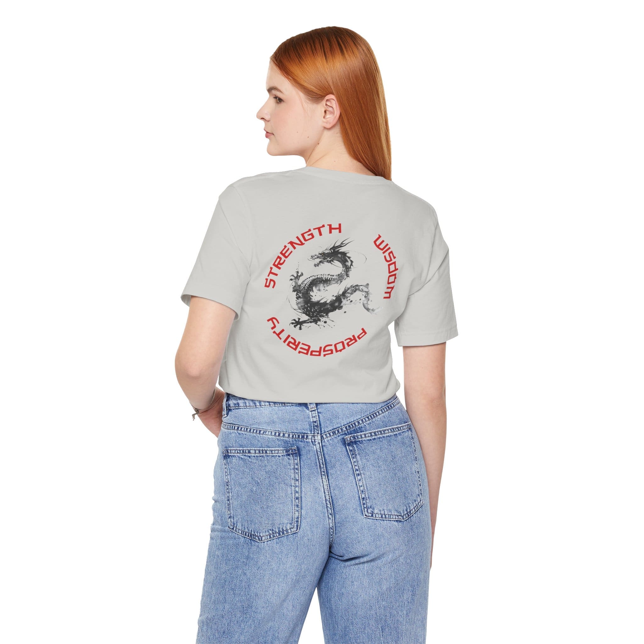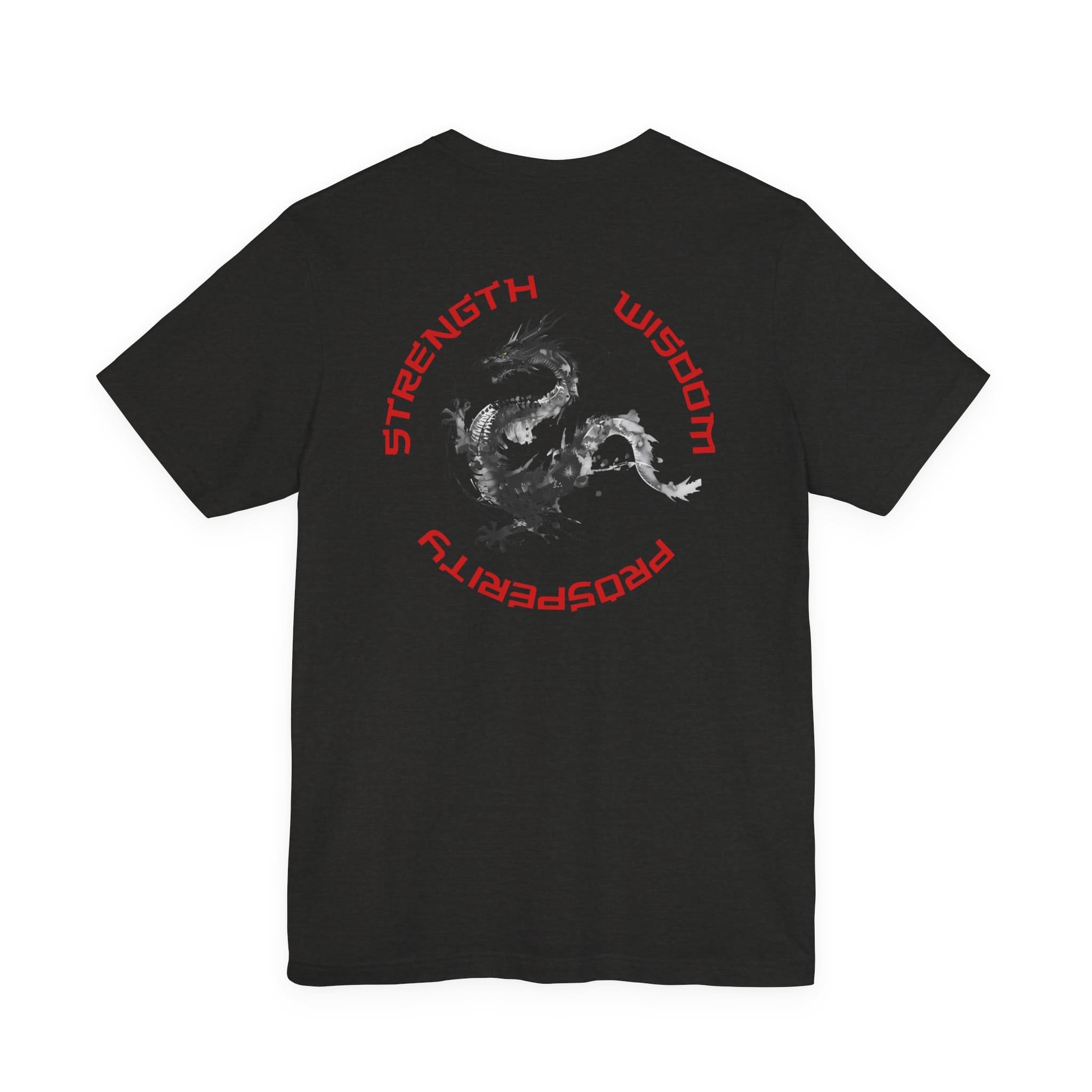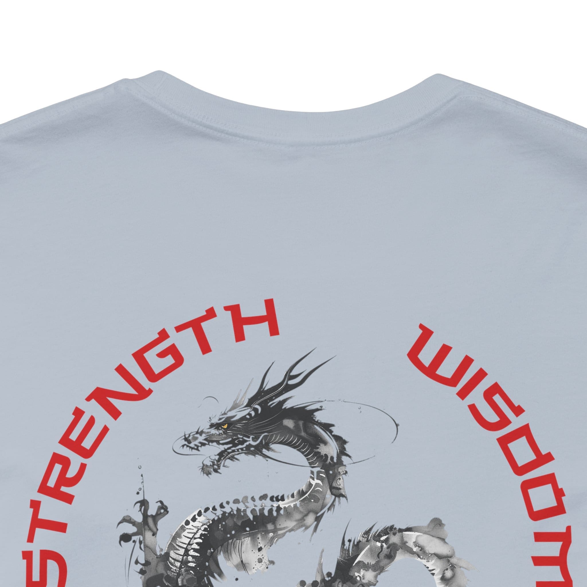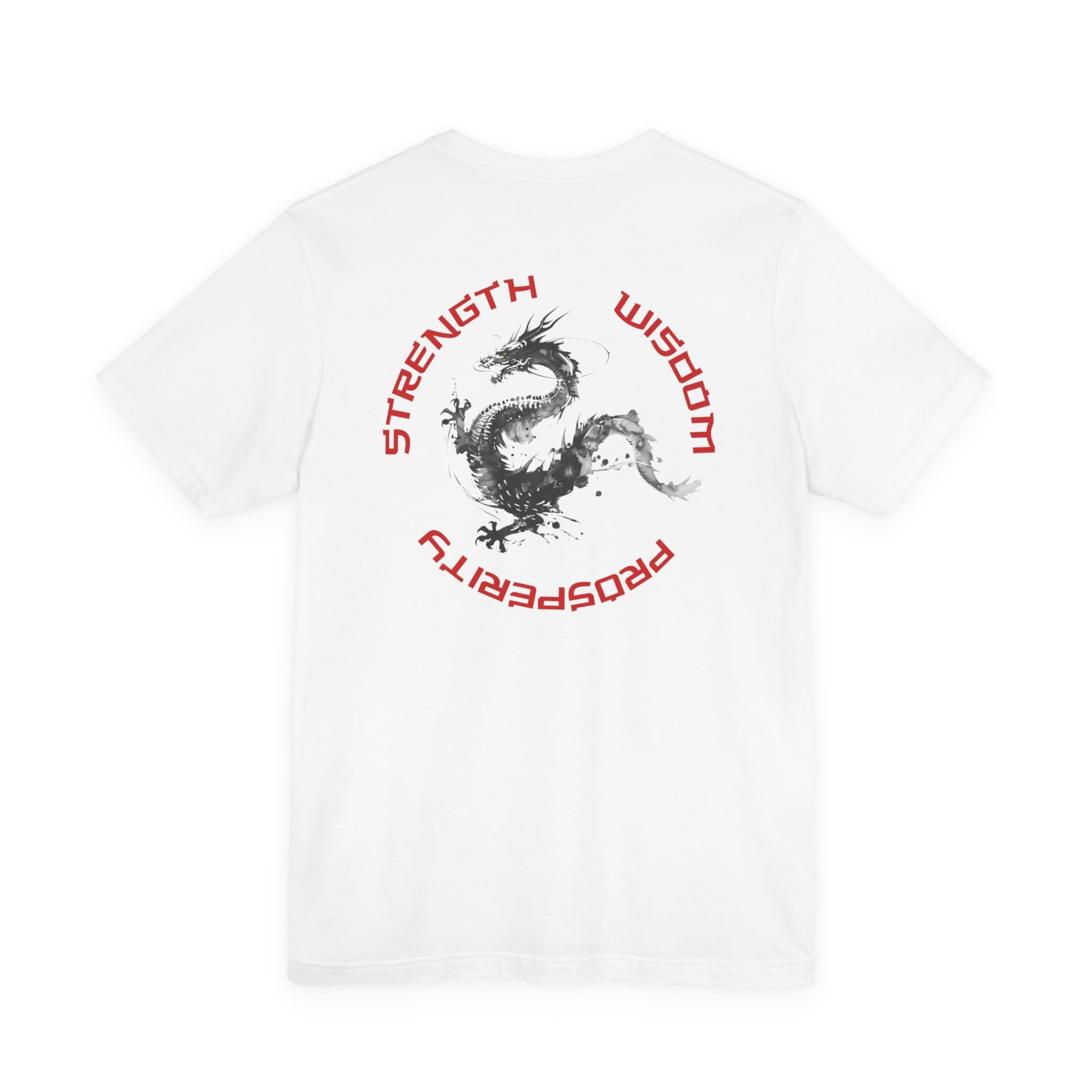 Strength, Wisdom, Prosperity Unisex Tee – a great shirt for cultivating a positive attitude about personal growth & spirituality, or just because! A dragon can also represent these inspiring words.