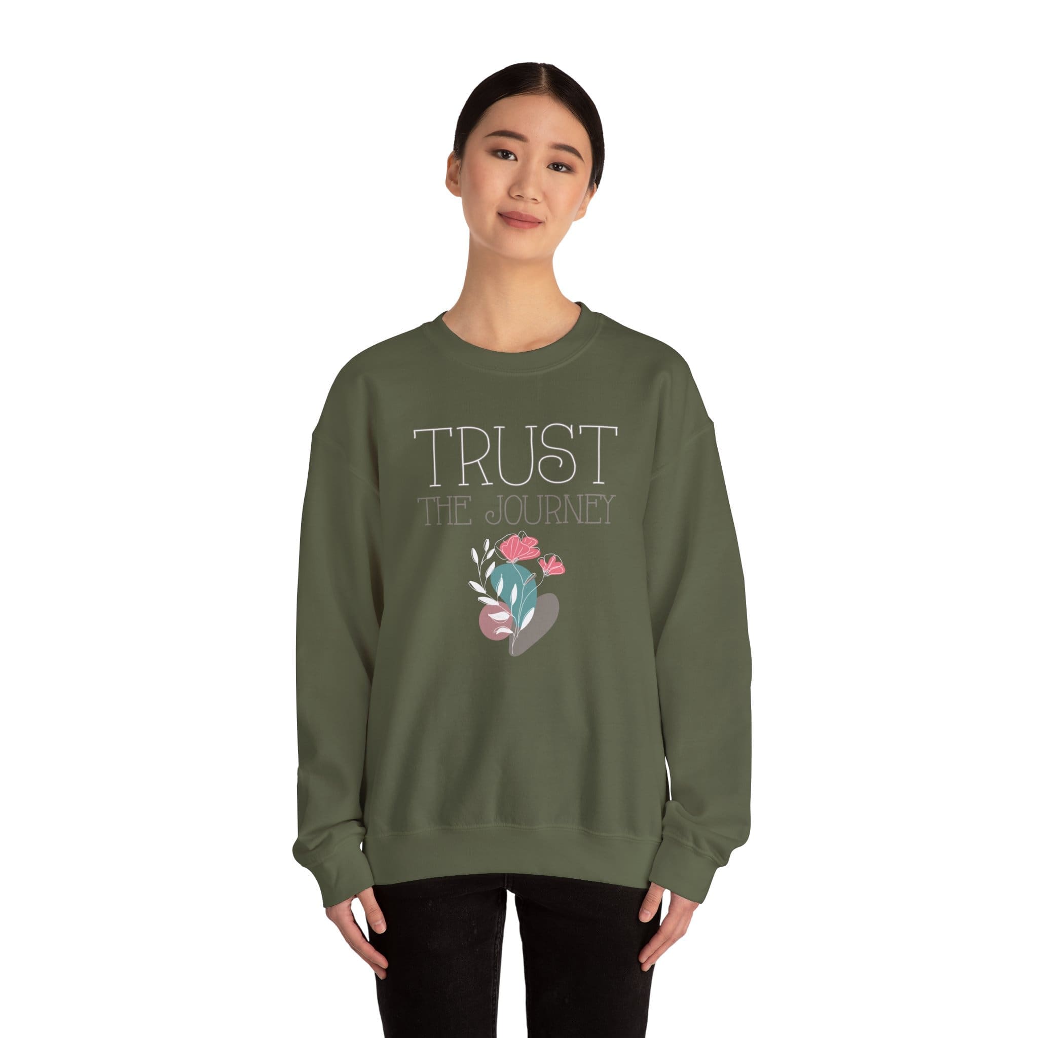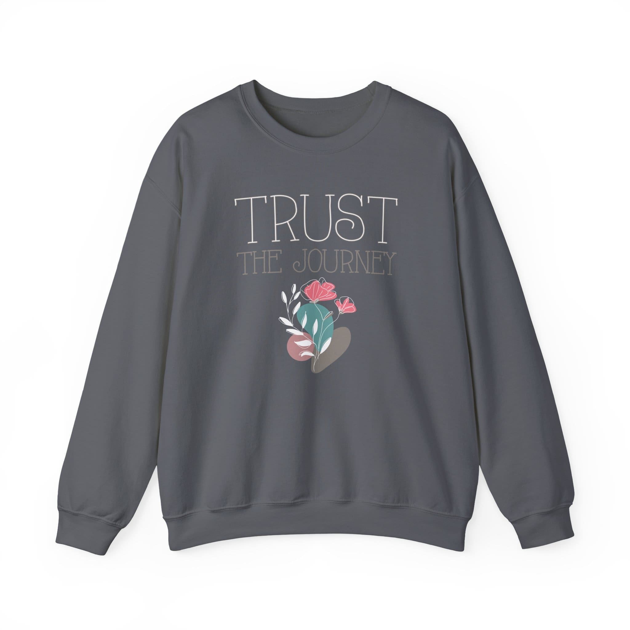‘Trust the Journey’ Crewneck Sweatshirt – This is an excellent choice for self-empowerment, a daily affirmation, or just because! It is printed on a unisex Gildan 18000 crewneck sweatshirt, which has a classic fit that feels nice and cozy!