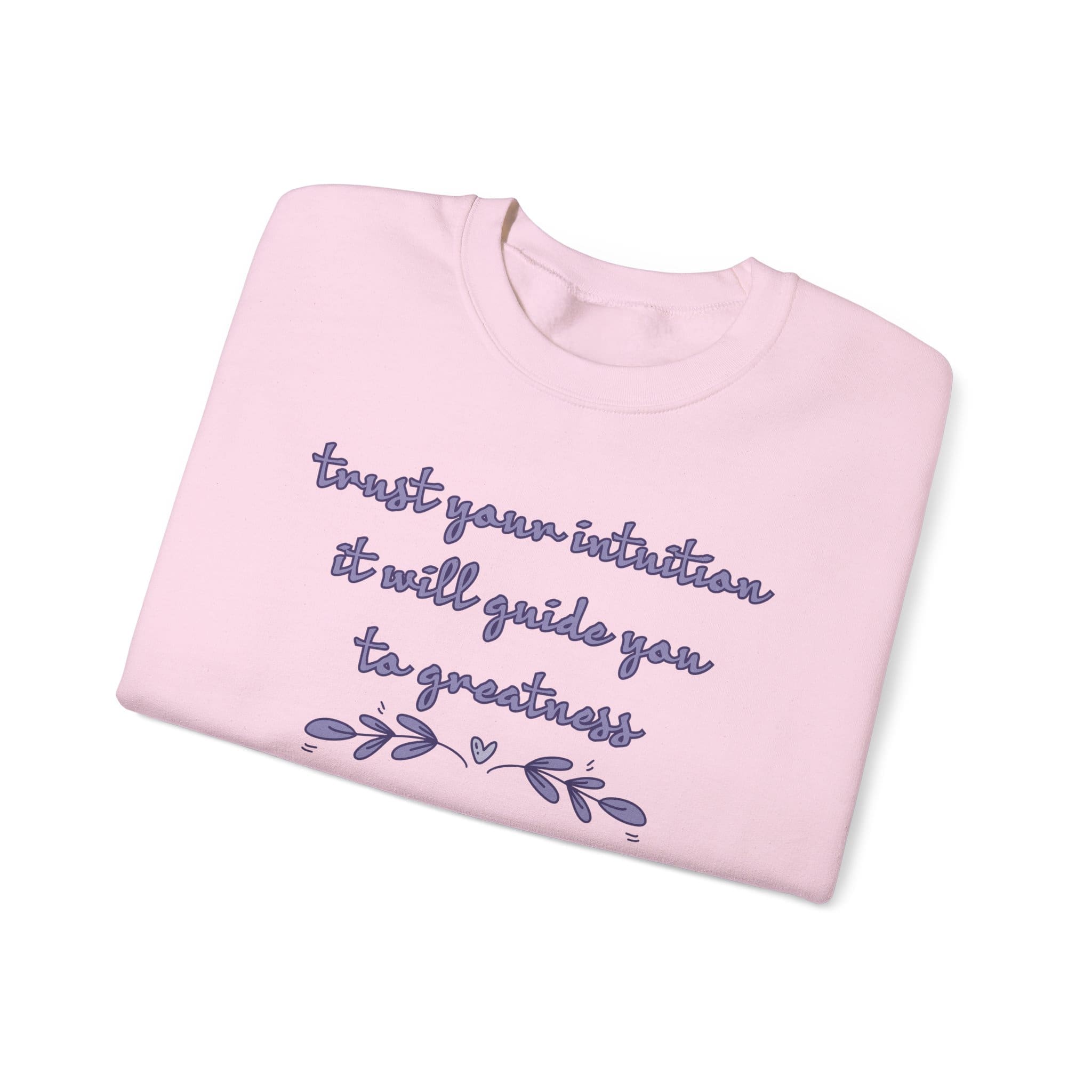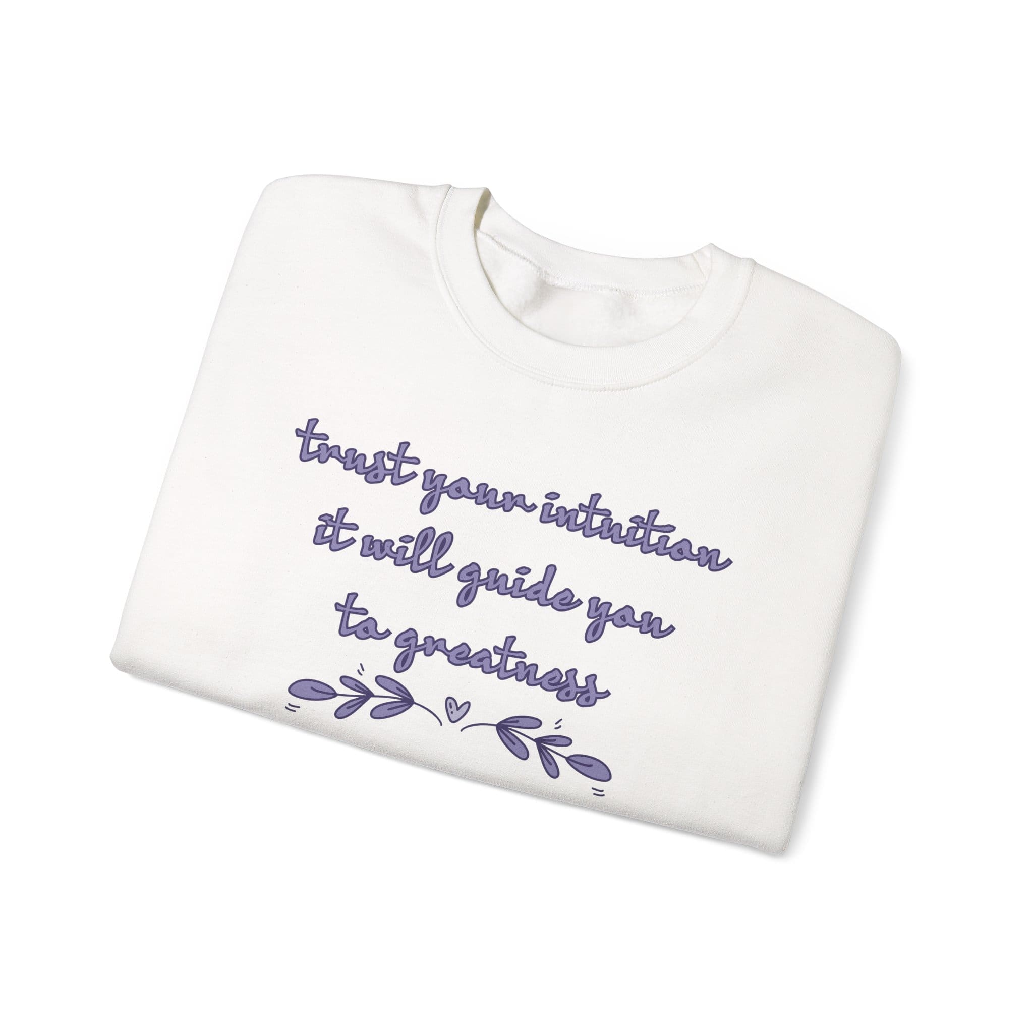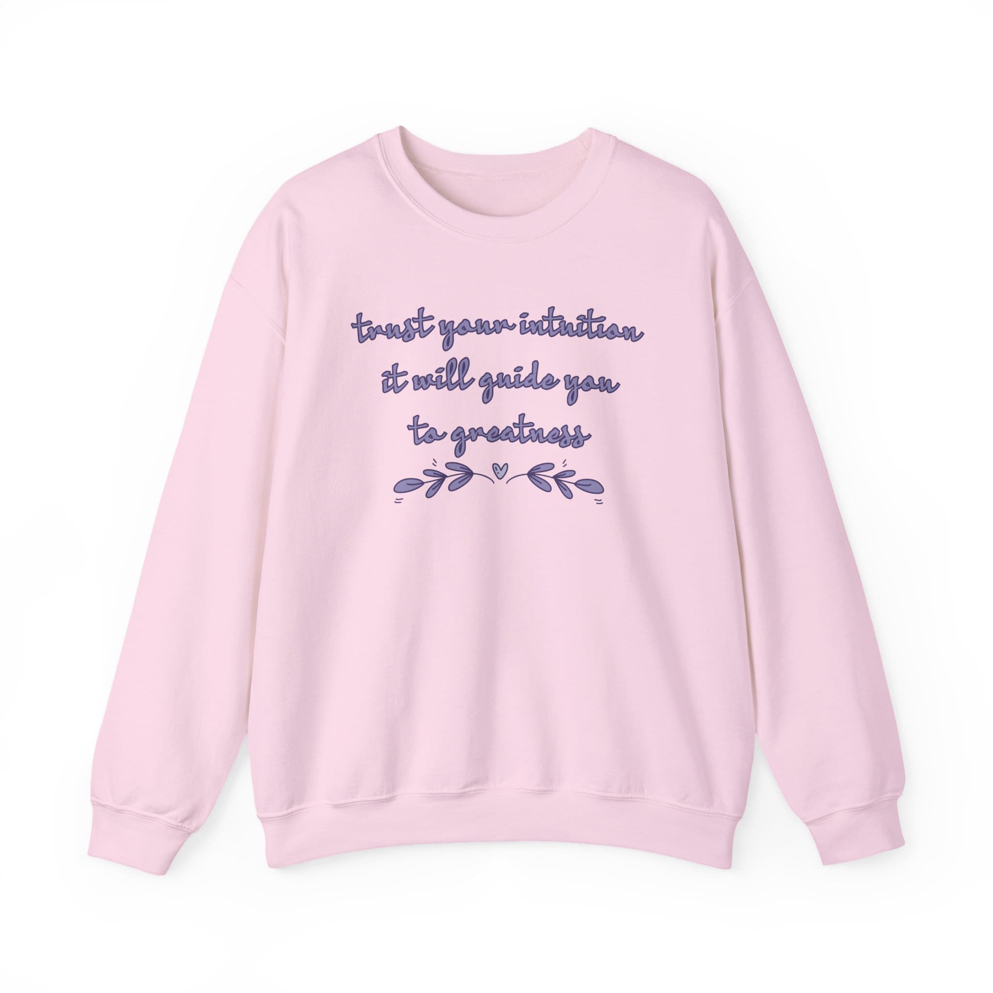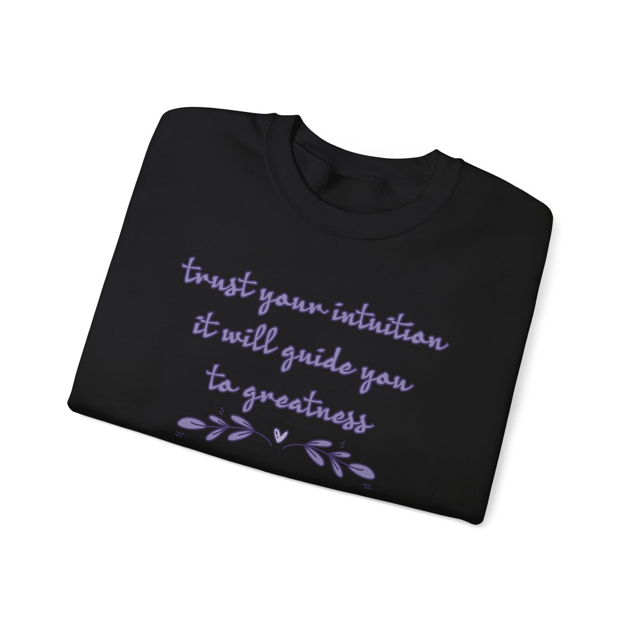 ‘Trust your intuition. It will guide you to greatness.’ Crewneck Sweatshirt – This is an excellent choice for self-empowerment, a daily affirmation, or just because! It is printed on a Gildan 18000 sweatshirt, which has a classic fit that feels nice and cozy!